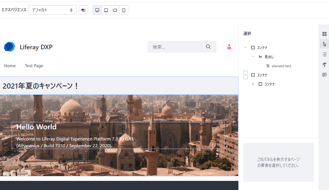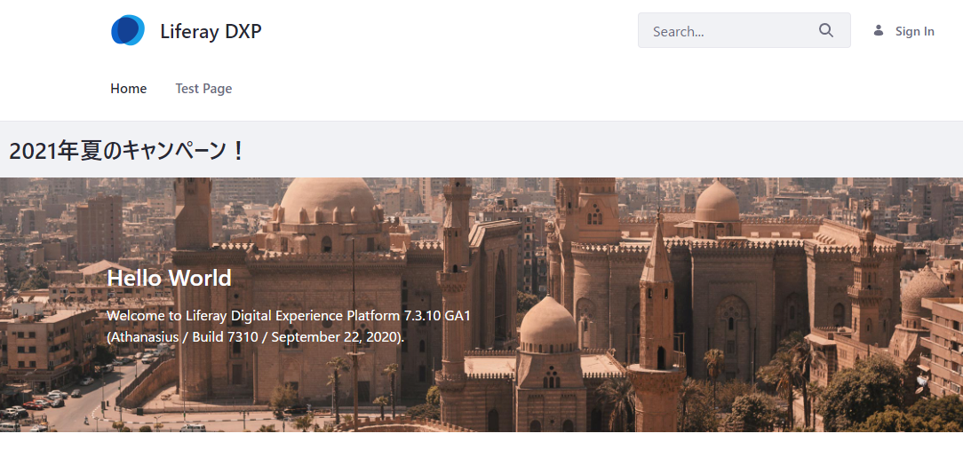 さて、これで公開完了ですので、別のブラウザ等でLiferayにアクセスしてみましょう。「キャンペーン_2021夏」の内容が表示されているはずです。