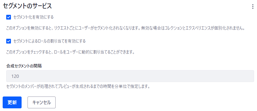 セグメントをロールに割り当てるためには事前の設定が必要です。まず、以下の2設定を行います。