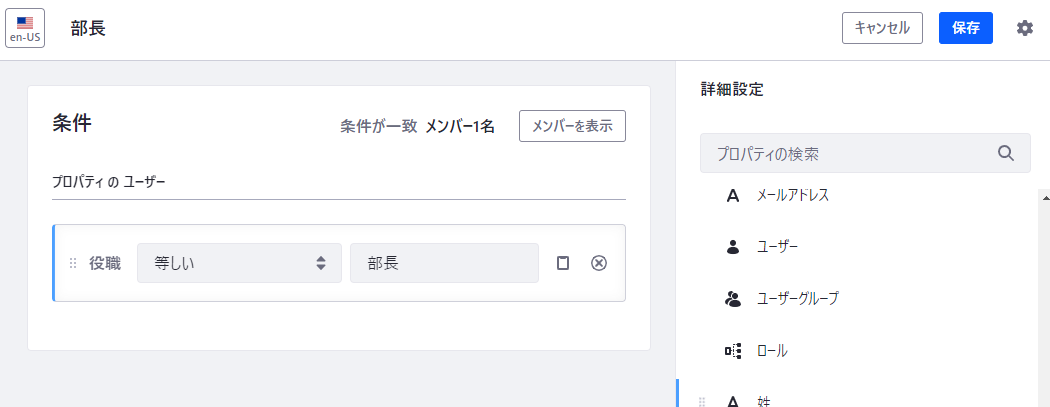 ここでは、ユーザのプロパティ「役職」が「部長」のユーザをSite Memberロールにアサインしてみたいと思います。