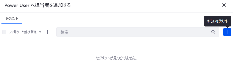 3. 追加アイコンをクリックするとグローバルサイトで定義されたセグメント一覧が表示される。未定義の場合は何も表示されないので右上の「新しいセグメント」アイコンをクリックする