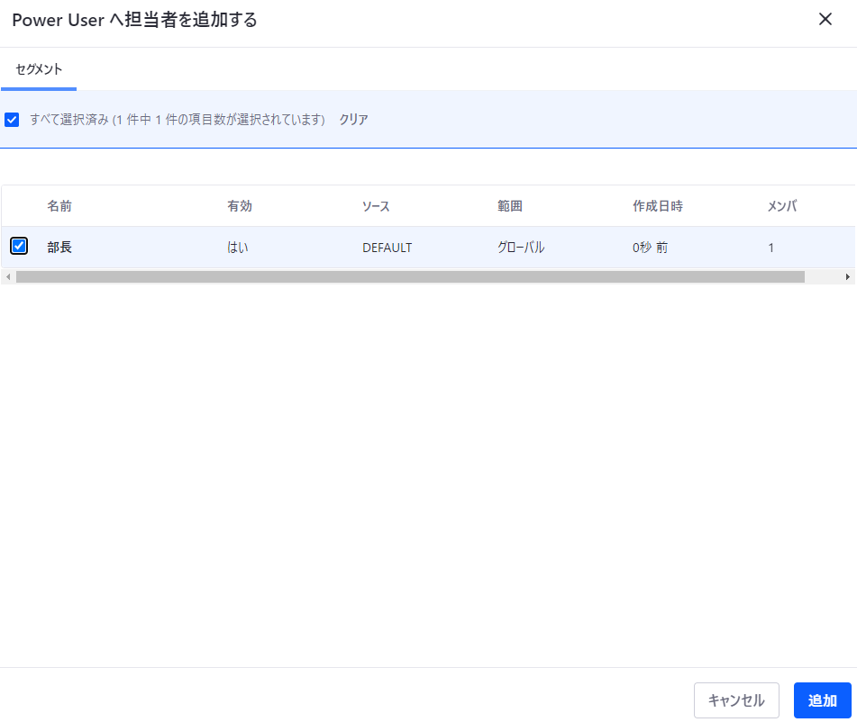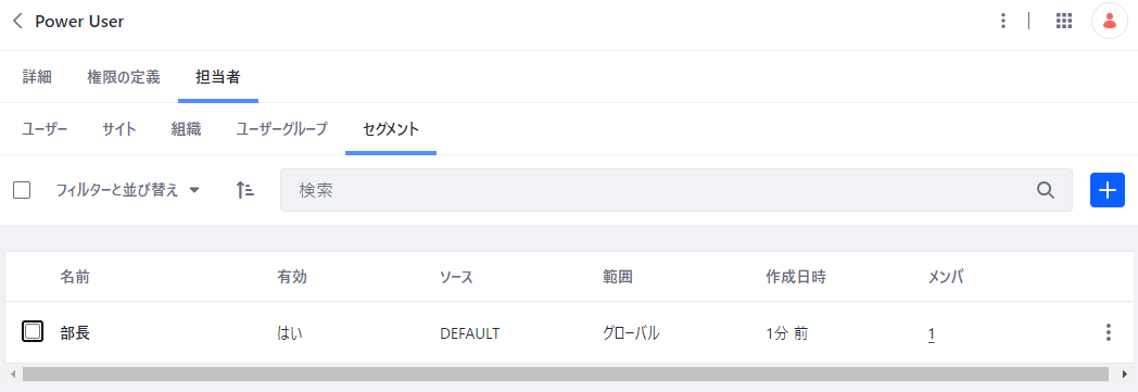 6. Power Userの担当者に作成したセグメントが追加されたことを確認する